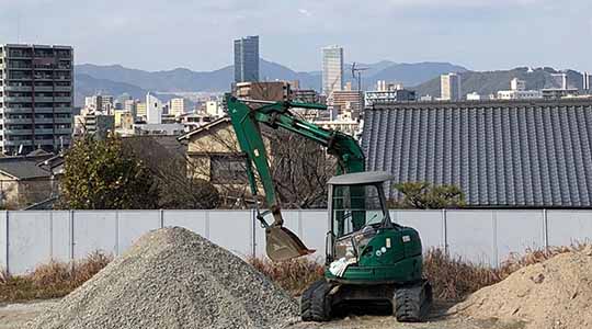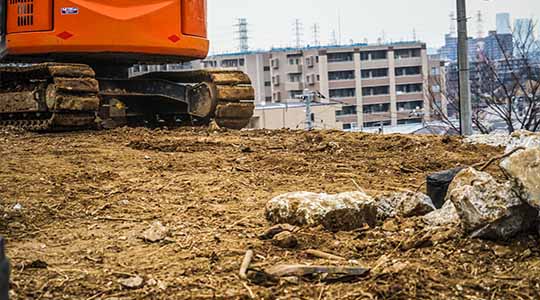 元々建物が建っていた土地を再利用するために、土を移動するなどして土地の形状を整えます。 弊社では、解体工事を主として行っているので、解体工事から造成工事まで一貫した対応が可能です。